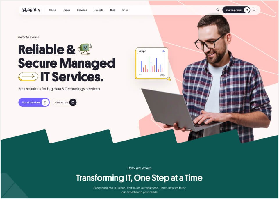 The Agntix built with modern agency like HTML5, Bootstrap, SASS, GSAP etc. You can use it to build your dream website. So, don't waste your valuable time.