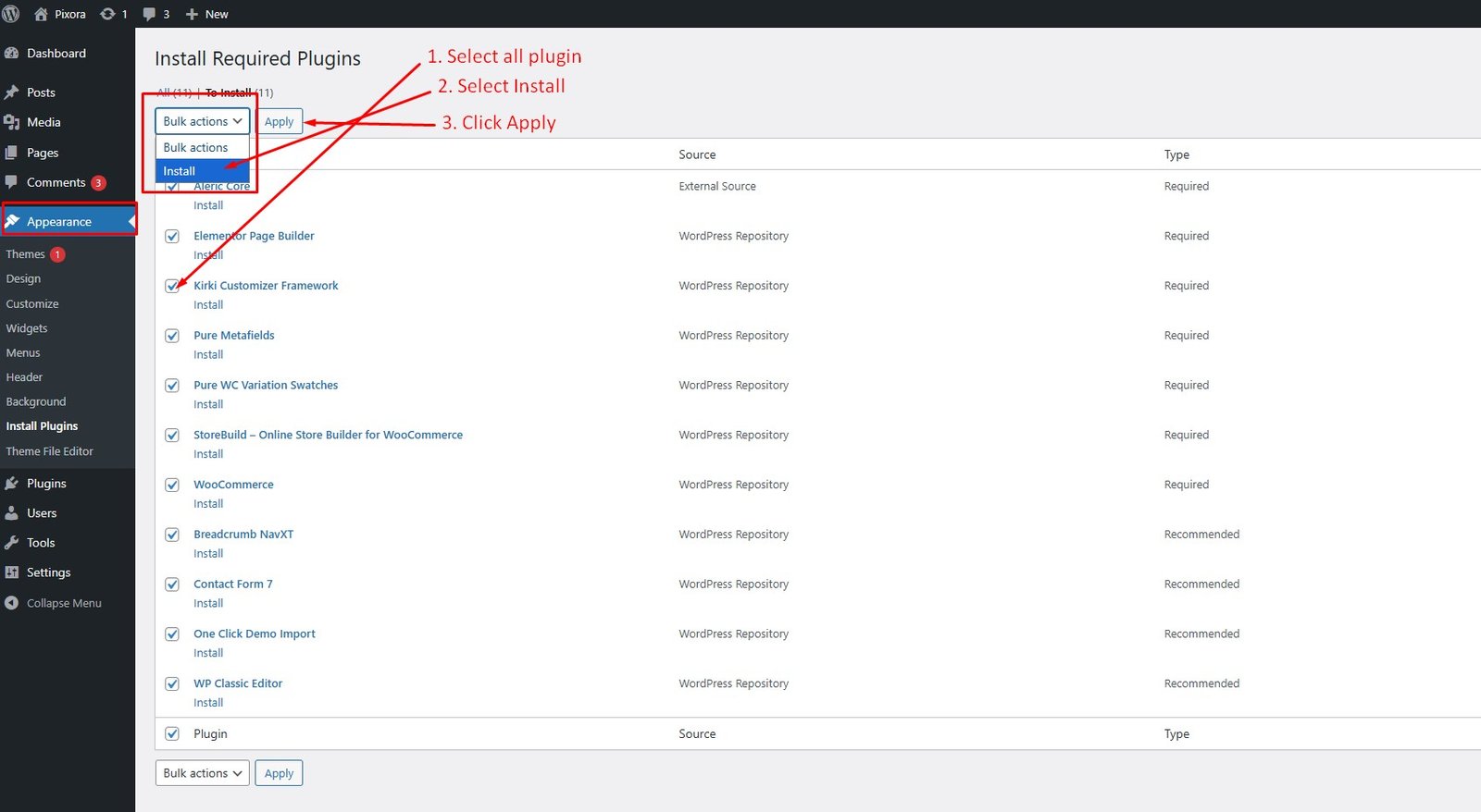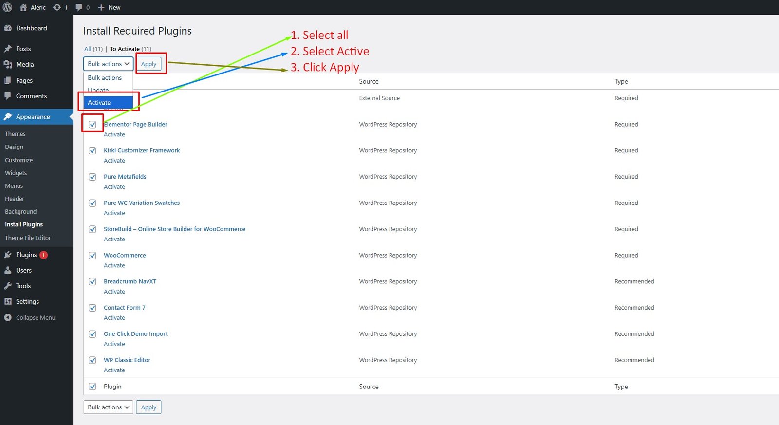 N.B: All plugins must be installed and activated if you want your site