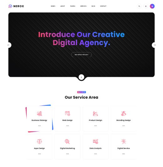Nerox designed uniquely for Digital Agency, Personal Portfolio etc..