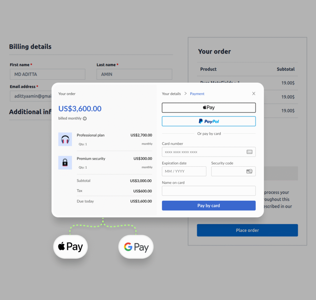 Offer your customers a smooth and secure checkout experience powered by Paddle. Accept global payments, handle taxes automatically, and boost conversions with a fast, frictionless checkout. Supports Paypal, Apple Pay, Google Pay and So on. Multicurrenies and Location wise Pricing.